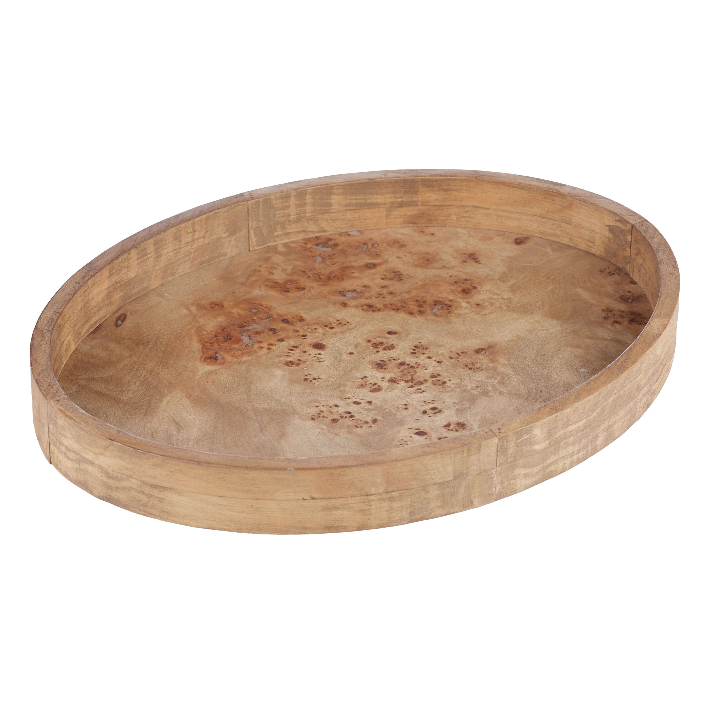 The Coastal Cove Oval Tray brings natural elegance and subtle coastal charm to your home. Crafted from wood with a textured burl veneer finish, it showcases beautiful grain patterns and warm earthy tones that add depth and character. Its soft oval silhouette is both functional and decorative, making it a versatile piece for coastal or contemporary interiors. Measuring 35 cm x 45 cm x 6 cm, it provides ample surface area while maintaining a light, airy presence.