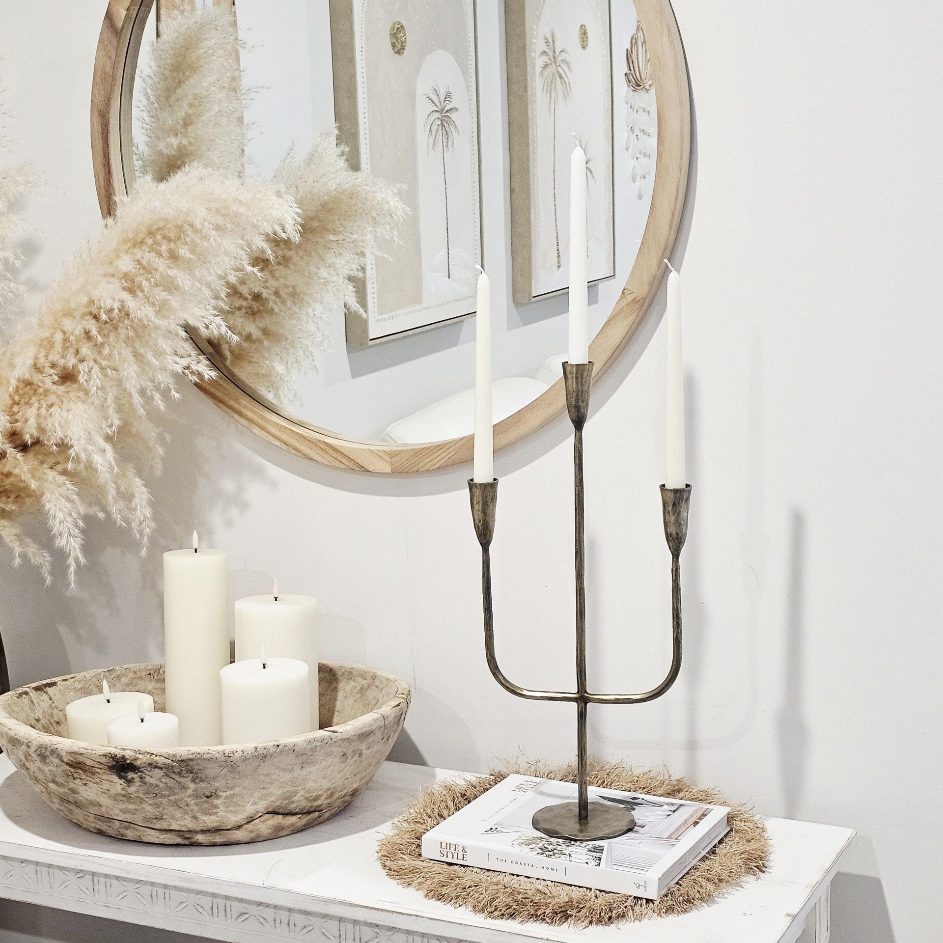 Perfect for year round styling, this piece adds warmth and sophistication to dining tables, mantels, or entryways. During the Christmas season, adorn it with greenery, ribbons, or twinkling lights to create a festive and timeless centerpiece that captures the spirit of the holidays.